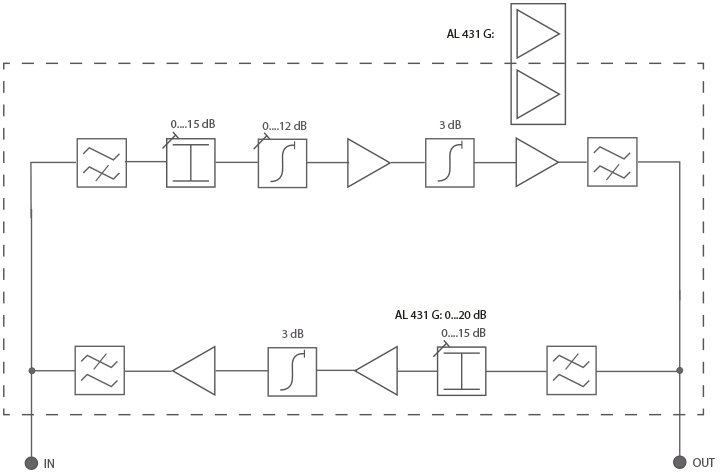 • Integrated return path amplifier and diplex filter Attenuation control for level adjustment at the input of the forward and return paths