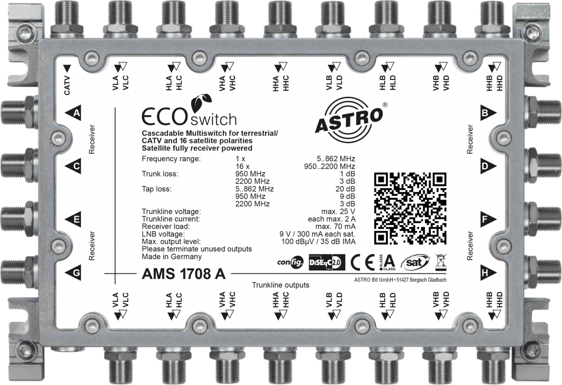 16 satellite levels + terrestrial signal, 8 receiver outputs
