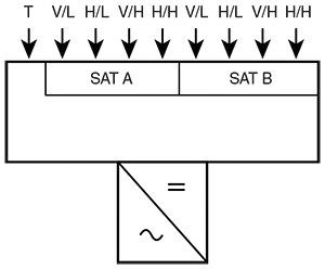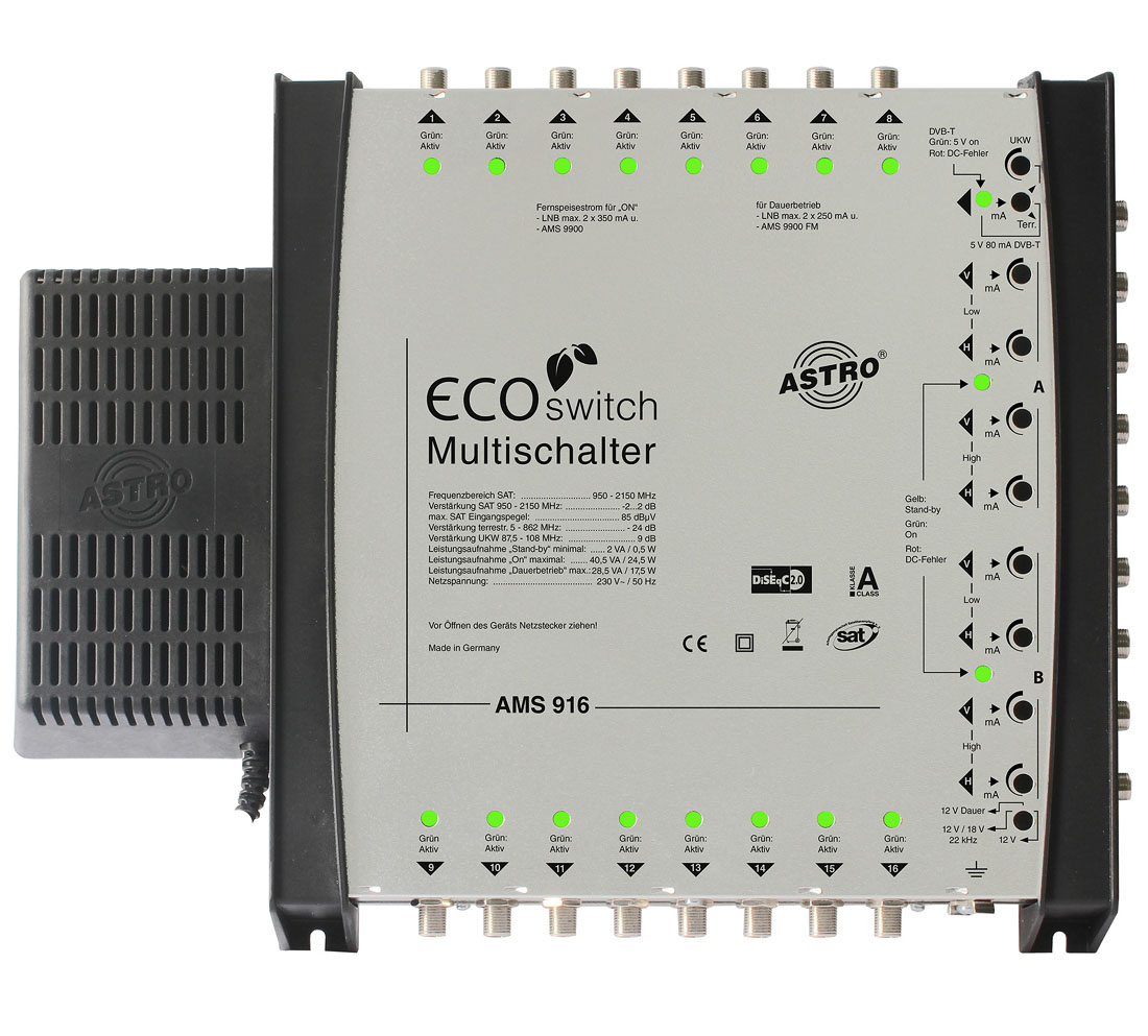 9 inputs for 2 satellite positions plus terrestrial signal, 16 receiver outputs