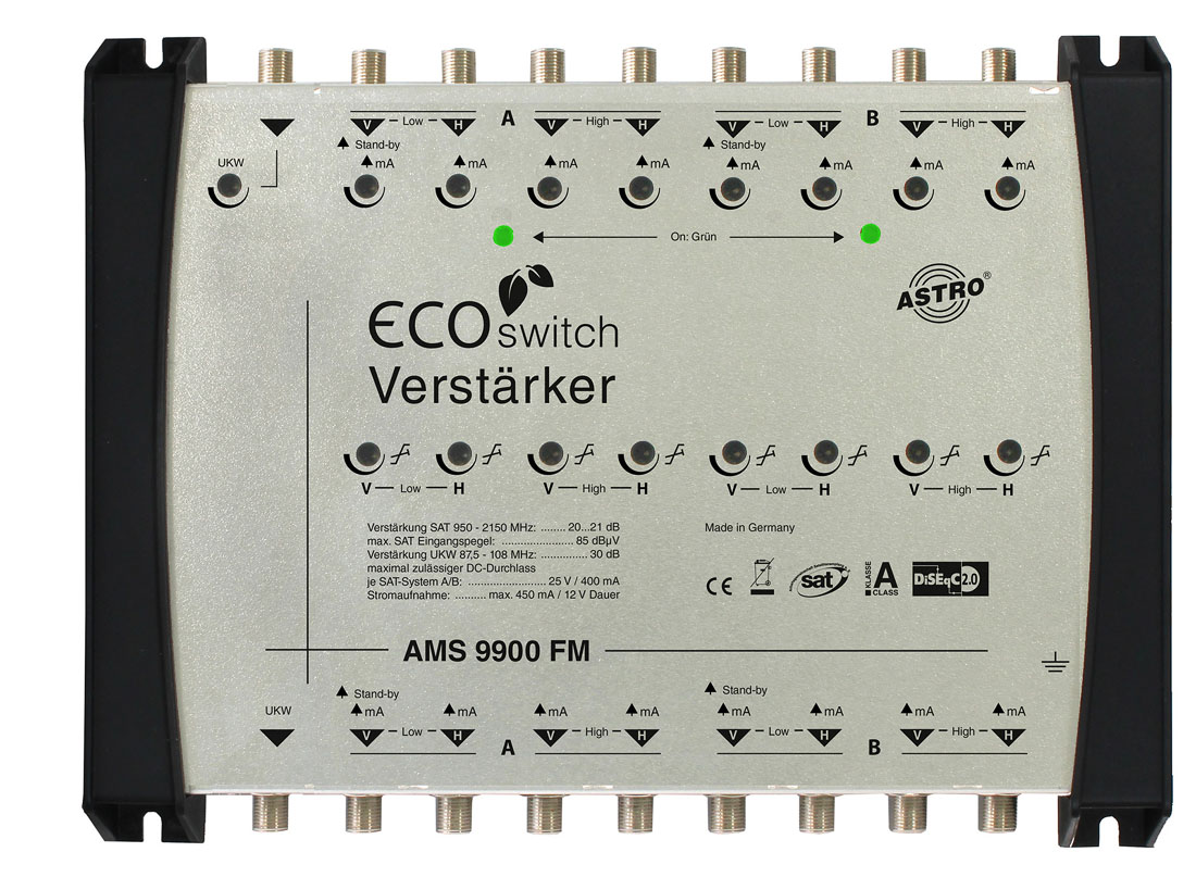 Remote-powered SAT IF amplifier for 8 SAT levels + terrestrial