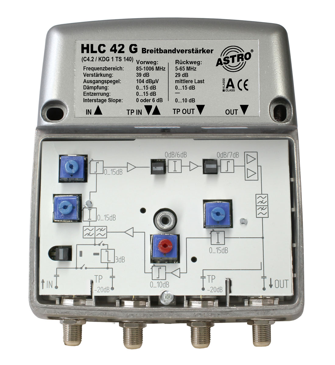 • Broadband amplifier with active 65 MHz return path