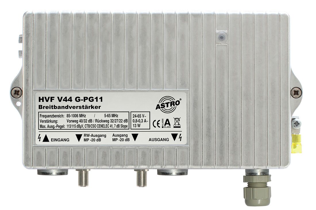 • Output level return path 116 dBµV @ 7 x QAM 64 / 6.4 MHz