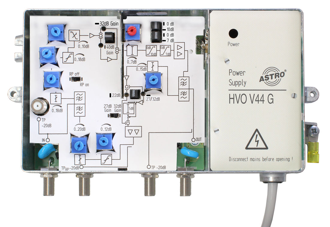 • 32 / 27 / 22 dB gain in return path (pluggable via jumper)