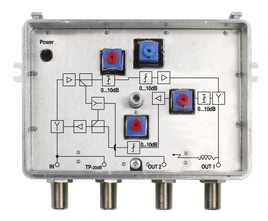 • Return path gain 20 dB (output 1) or 0 dB (output 2)