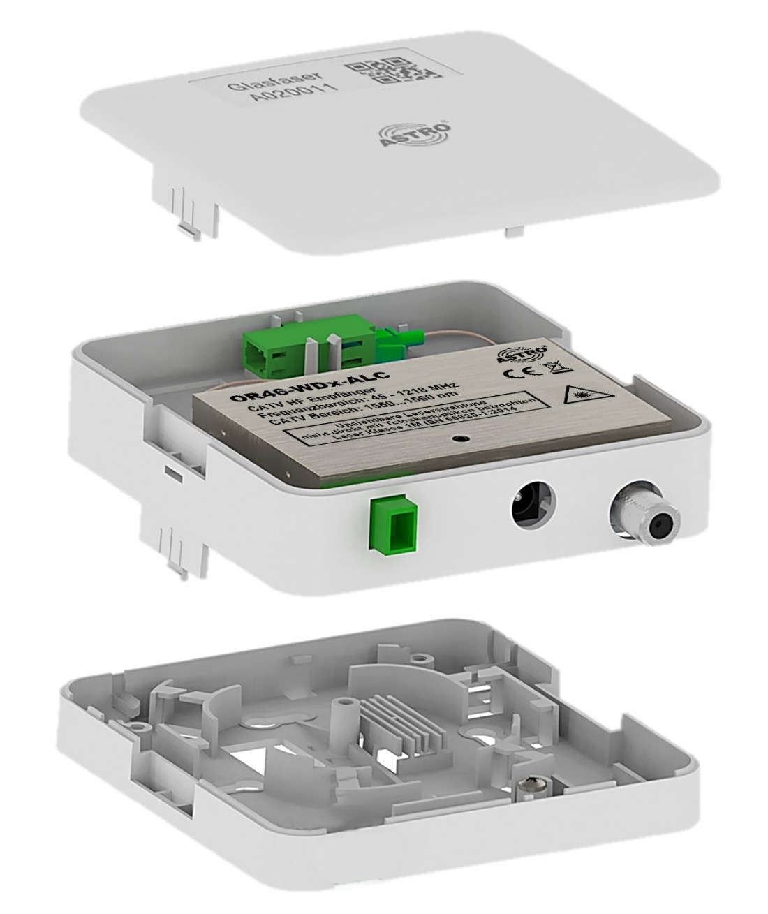 • Plastic lid housing for 4 splices with the option of pure passive function and optical RF receiver for CATV