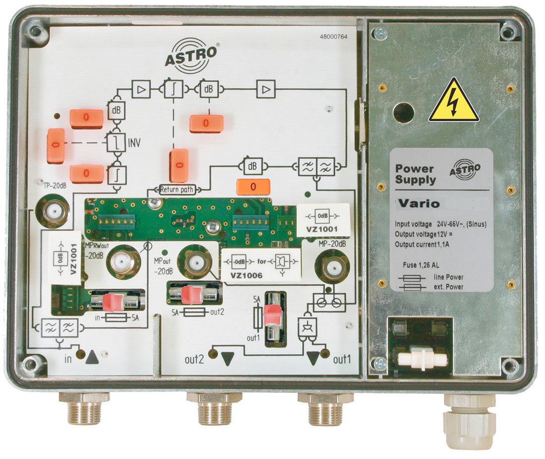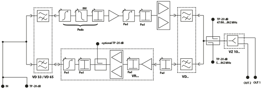 • 2 outputs configurable via plug-in modules (taps or distributors)