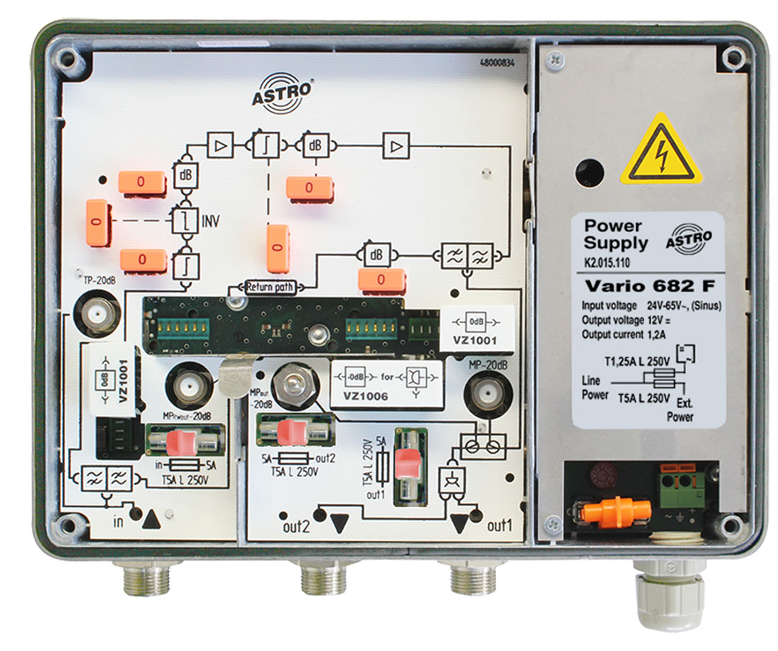 • 2 outputs configurable via plug-in modules (taps or distributors)