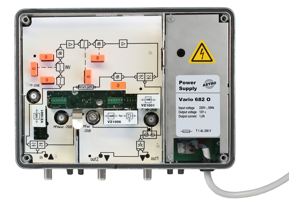 • 2 outputs configurable by means of plug-in modules (taps or distributors)