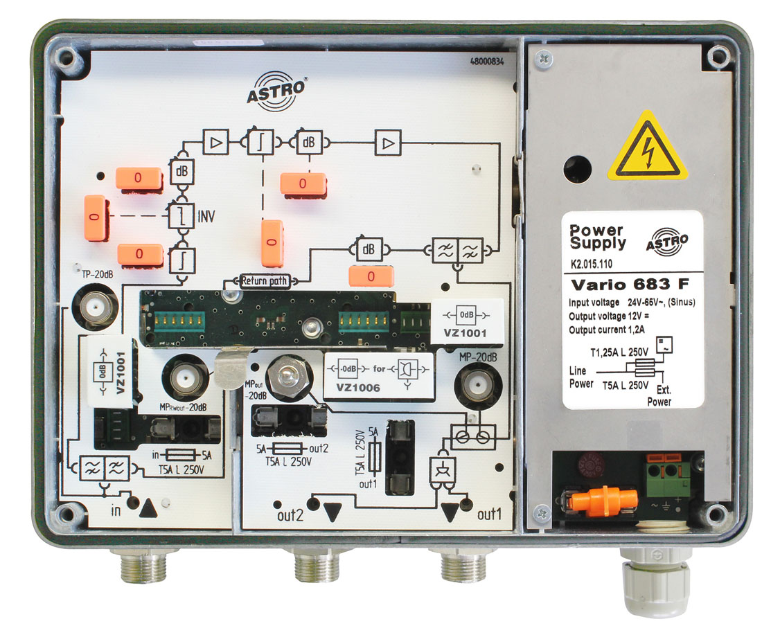 • 2 outputs configurable by means of plug-in modules (taps or distributors)