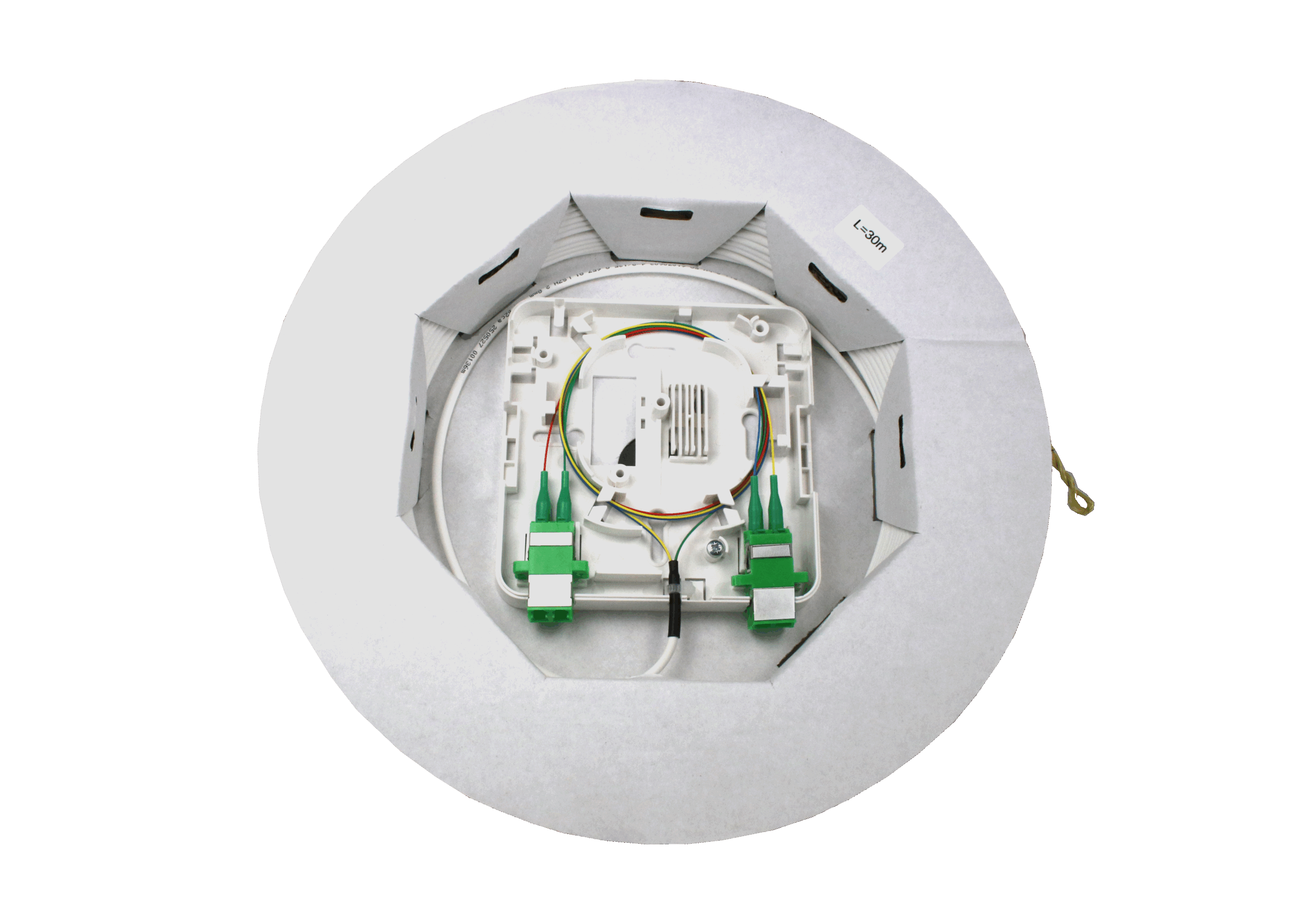 Wohnungsübergabepunkt, Eingangsanschluss mittels Spleißtechnik, 2x LC Duplex Anschluss, Faserlänge 100 m